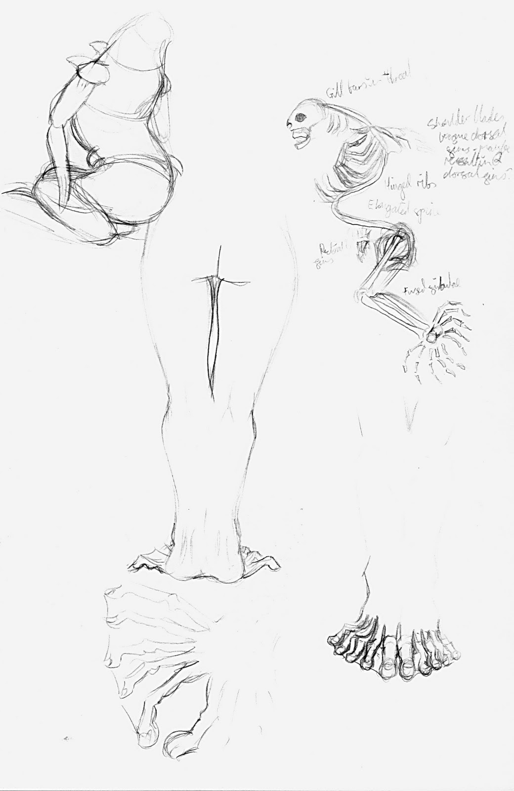 And some work-in-progress shots of my final piece. I settled on the fish-on-a-horse idea because it was splendidly unusual and stubborn. The orientation of the first sketch is actually the correct one, I just kept saving when it was flipped. Also swatches, swatches everywhere.
